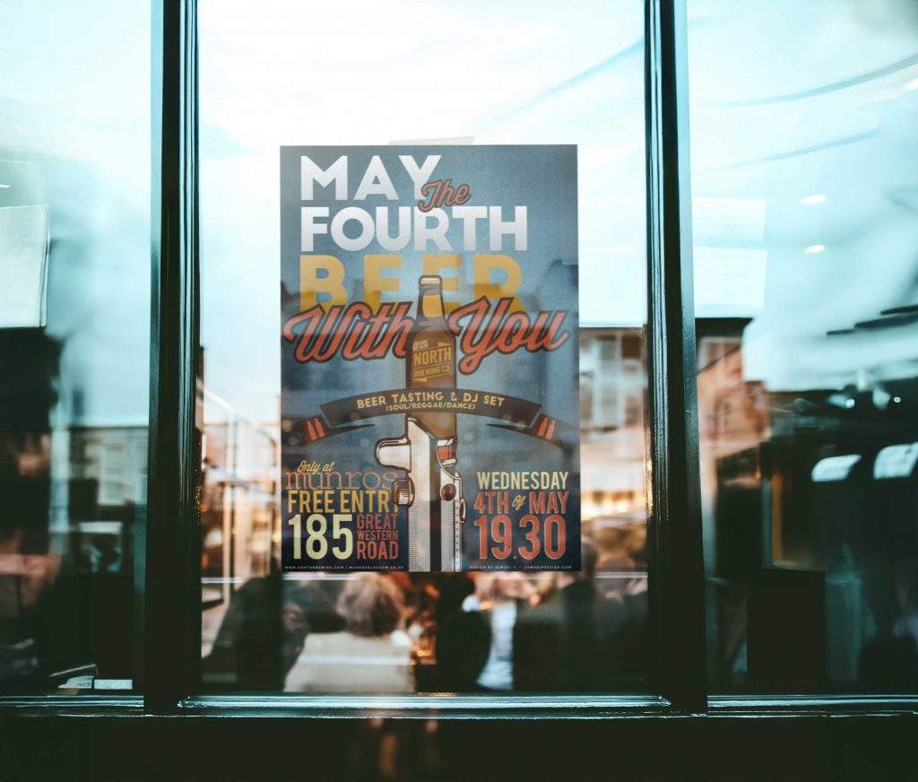 • Univers : conception d’affiche, marketing bière artisanale, design thème Star Wars, publicité pub, promotion tap takeover, design événement Glasgow, branding brasserie