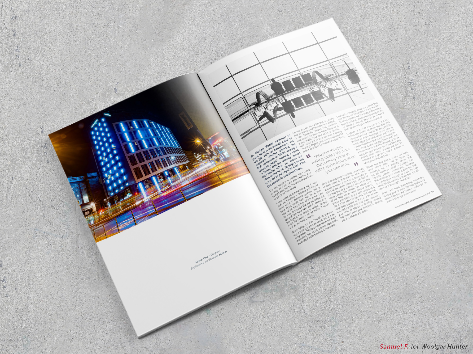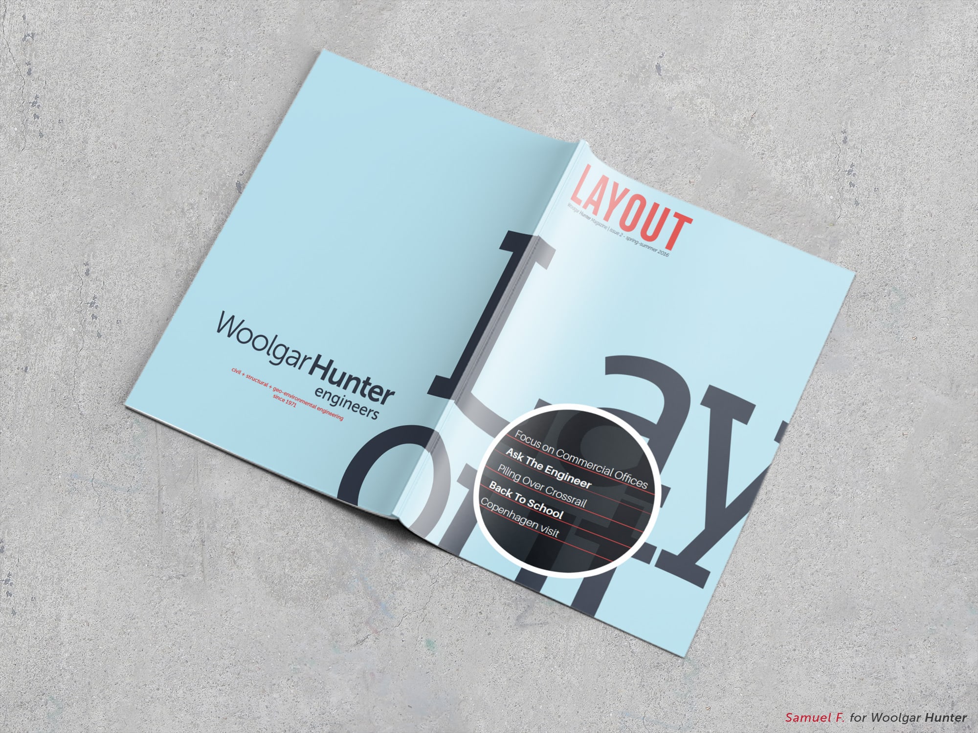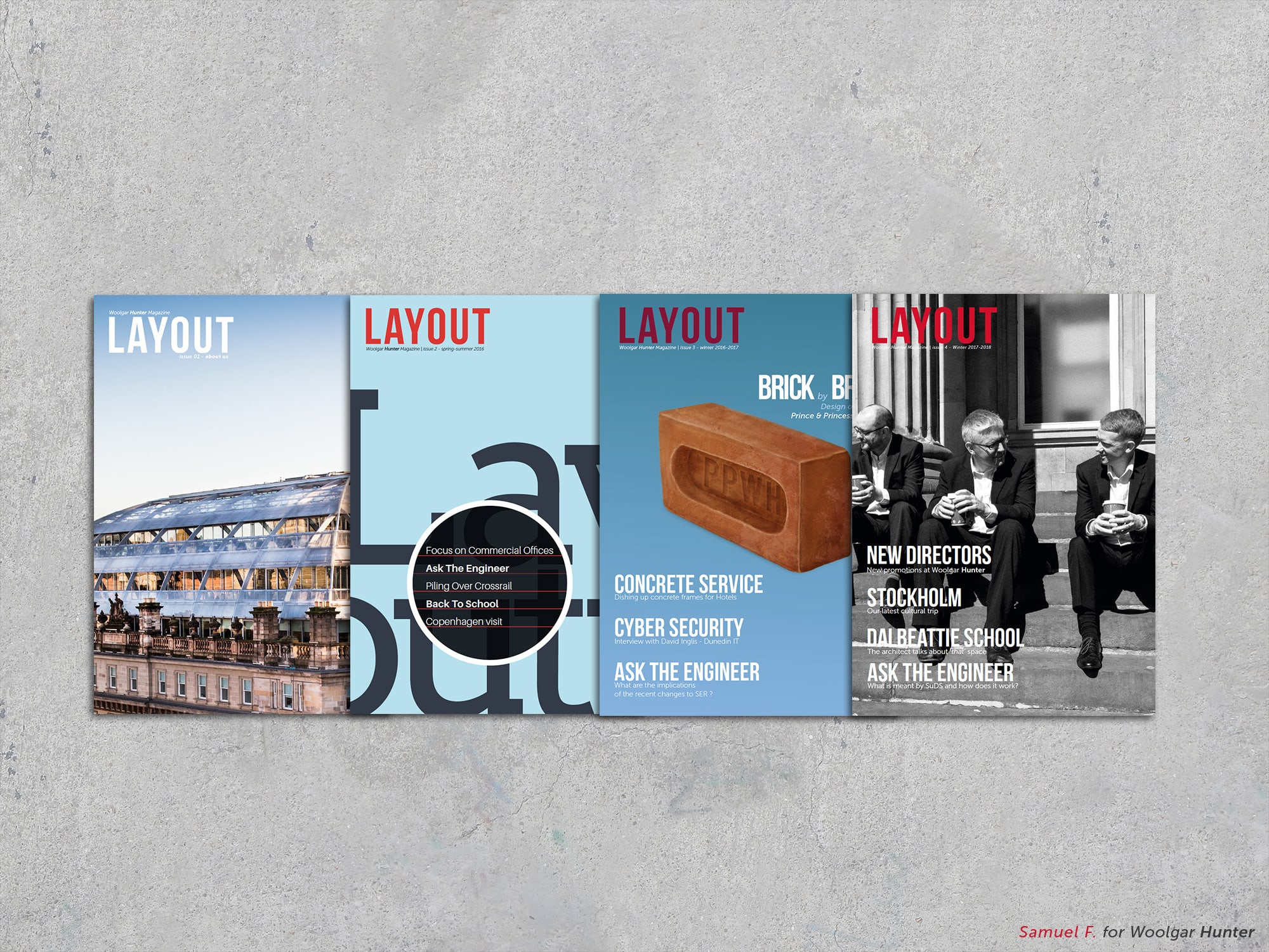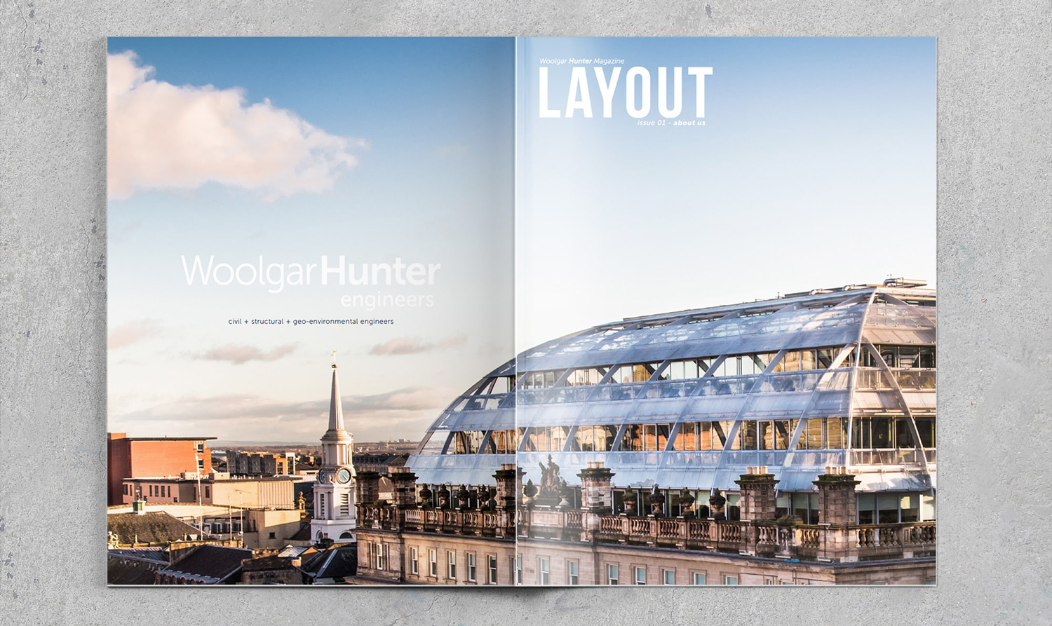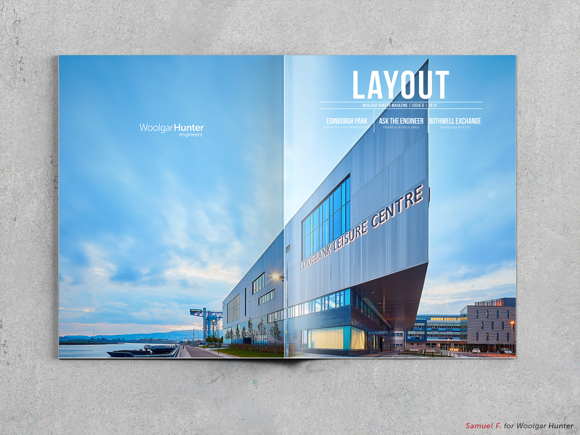 With Woolgar Hunter, a renowned Scottish civil engineering firm, the mission entrusted to me went beyond a simple graphic redesign: it involved creating an integrated communications department within a technical company, a first in the sector. I thus designed, from A to Z, the magazine LAYOUT — an ambitious editorial project that transformed traditional B2B communication into a visual and informative experience anticipated by clients.